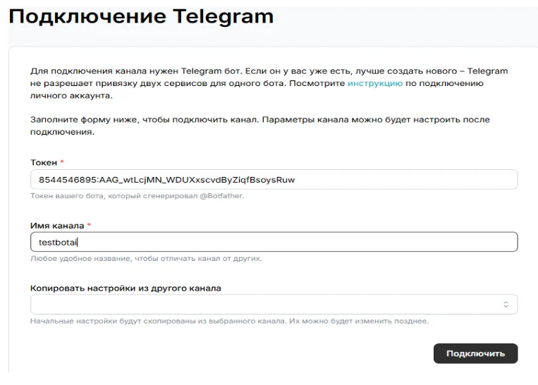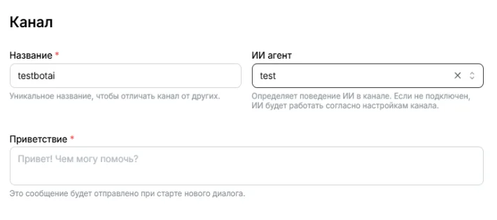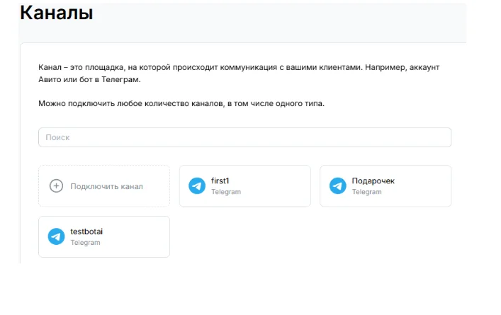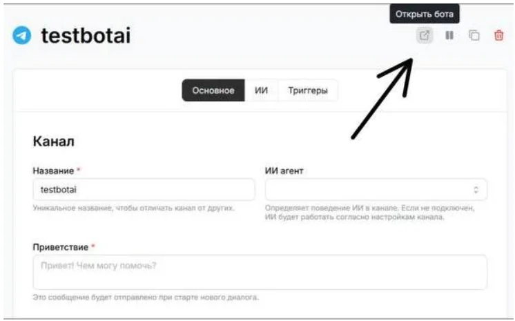 Для того, чтобы открыть диалог с ботом, необходимо зайти в раздел “Каналы”, выбрать созданного бота и в правой части экрана нажать “Открыть бота”.