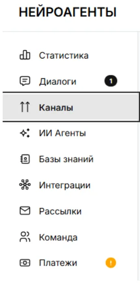 1. В левом меню нажмите "Каналы"